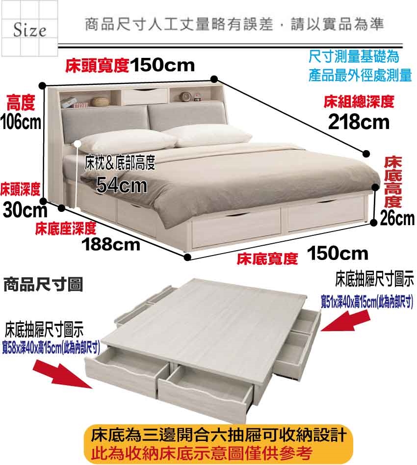 - 床頭尺寸:(寬)150x(深)30x(高)106/公分