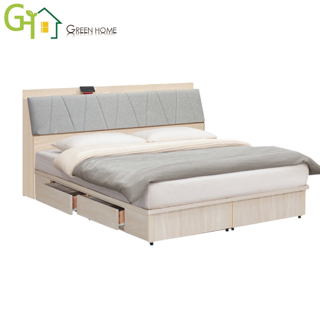 ★偏遠地區需額外加收運費,下標請先問與答詢問★ ★下訂前注意 由於商品流動較快,下訂前請先詢問是否有貨在下訂喔~★ 【綠家居】愛可5尺雙人貓抓皮革二抽床台組合(床頭箱+二抽床底+不含床墊) 淺橡木紋色系+現代簡約風格+安心材質製造,整體採用防蛀木心板+六分木床板+防潮耐磨底座+耐磨貓抓皮革+高回彈泡棉等安心材質製造,產品外層採用防潮耐磨噴漆處理搭配採用床頭箱可掀式床枕板+內&外收納層格+便利插座設置+床底座單邊開合二抽屜等收納空間設計,全由專人配送到家,專業安心服務,替你省下更多時間!