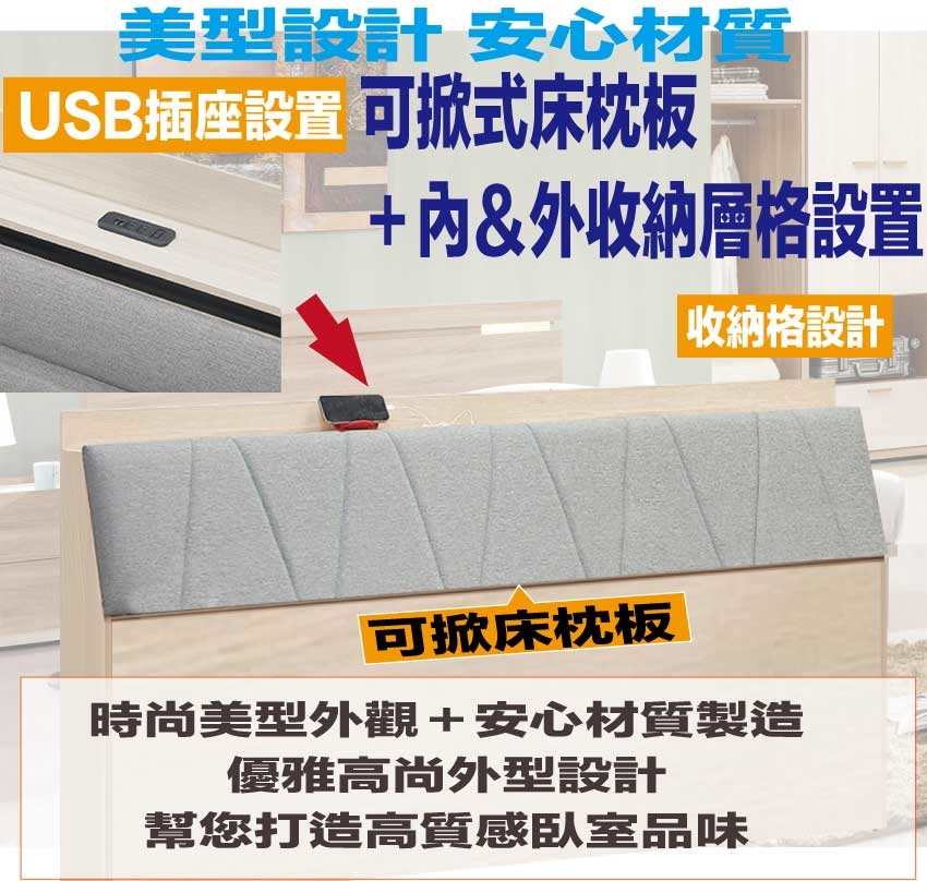 可掀式床枕板+內&外收納層格