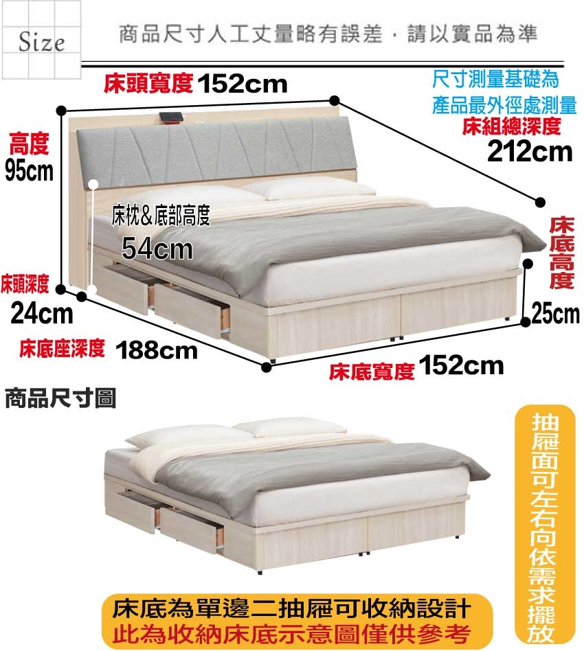 - 床頭尺寸:(寬)152x(深)24x(高)95/公分