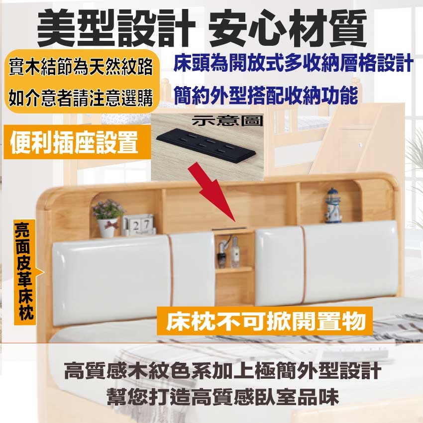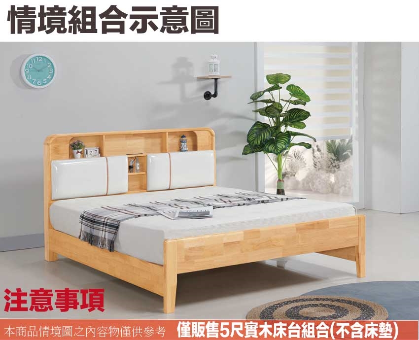 - ◆產品名稱:【綠家居】凱拉5尺雙人實木皮枕床台(不含床墊)
