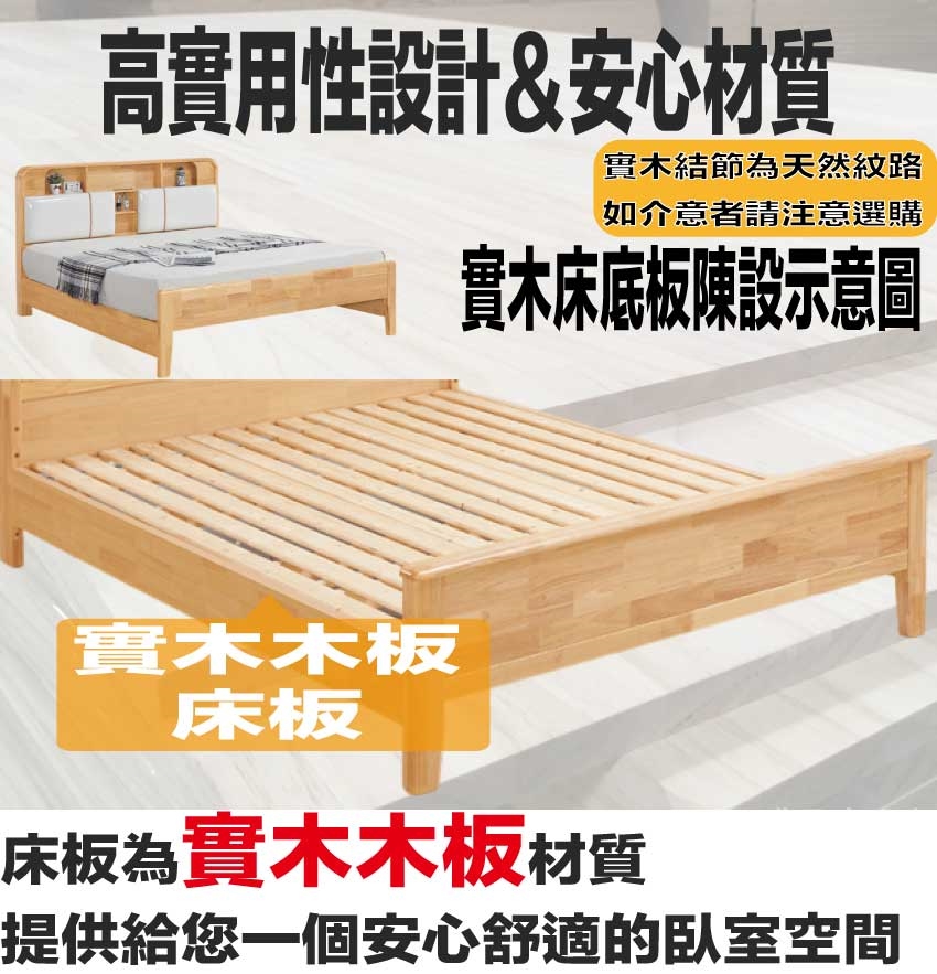 橡膠木實木+實木床底板