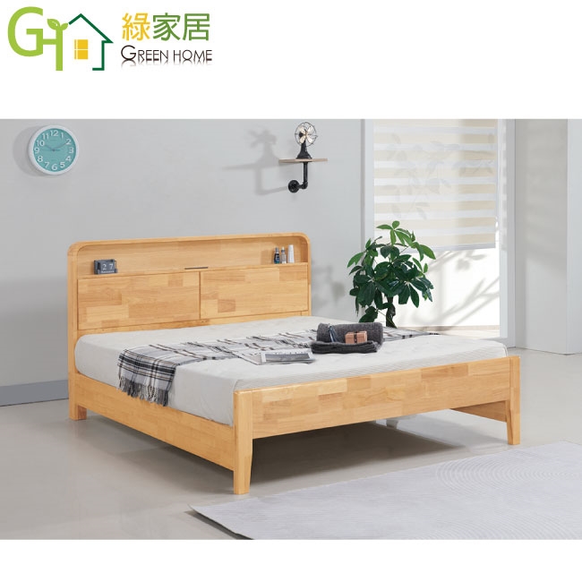 【綠家居】凱亞5尺雙人原曲實木床台(不含床墊)