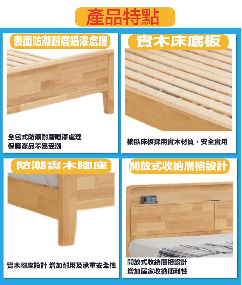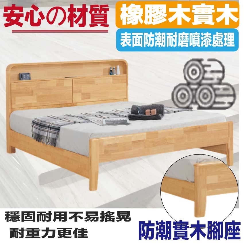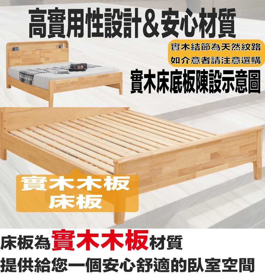 採用橡膠木實木+實木床底板+實木曲線腳腳座等安心材質製造