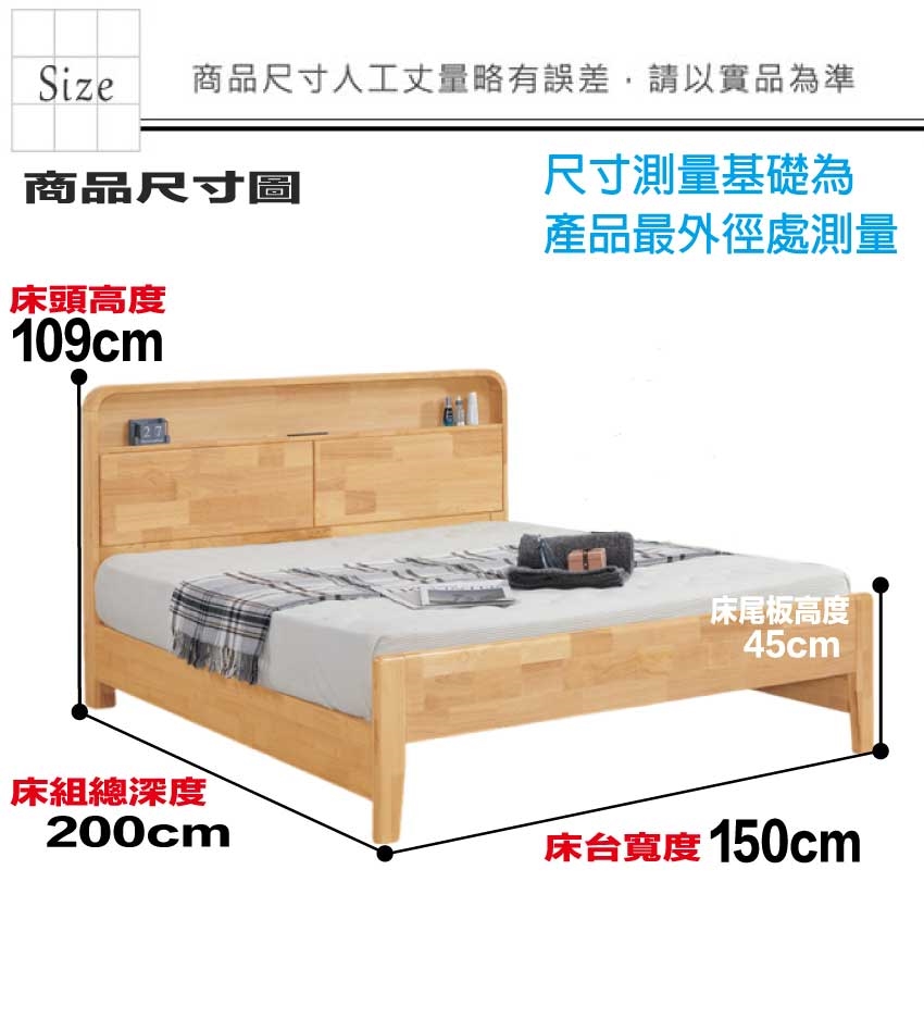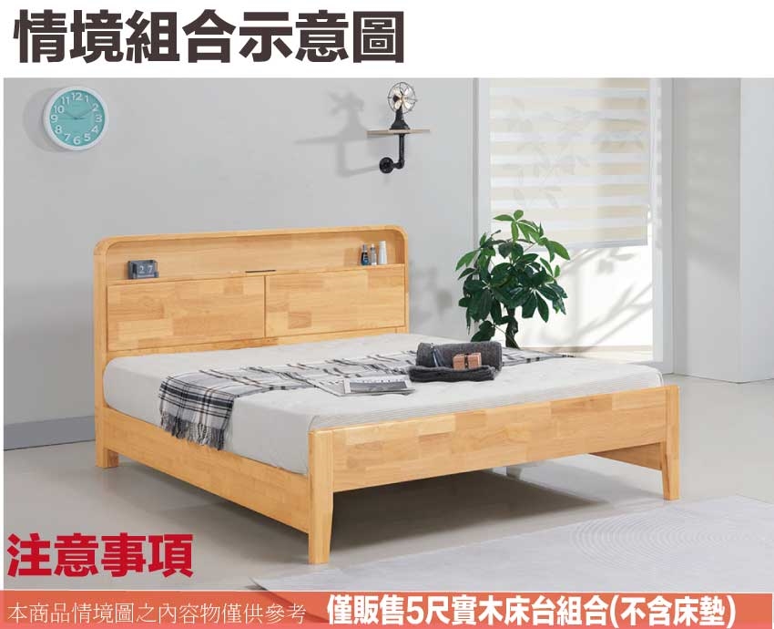 - ◆產品名稱:【綠家居】凱曼5尺雙人實木皮枕床台(不含床墊)
