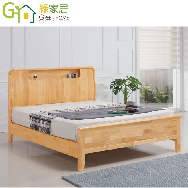 【綠家居】亞科5尺雙人原曲實木床台(不含床墊)