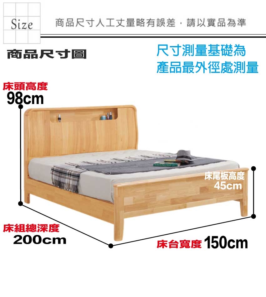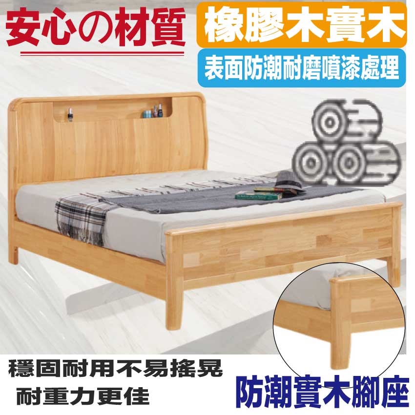 材質:橡膠木實木+實木床底板+實木曲線腳腳座