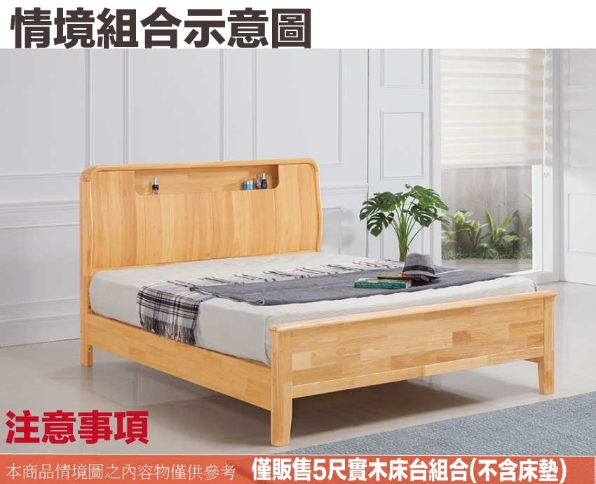 - ◆產品名稱:【綠家居】亞科5尺雙人原曲實木床台(不含床墊)