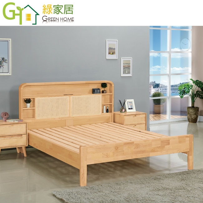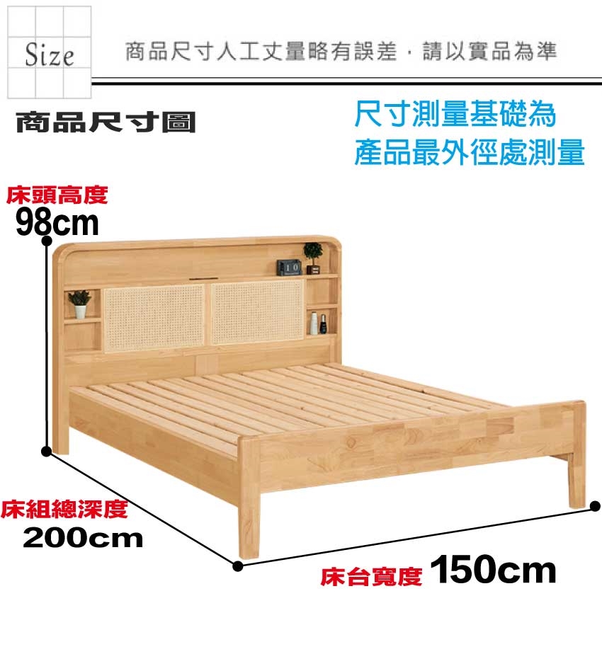 - ◆產品名稱:【綠家居】亞馬5尺雙人藤編實木床台(不含床墊)