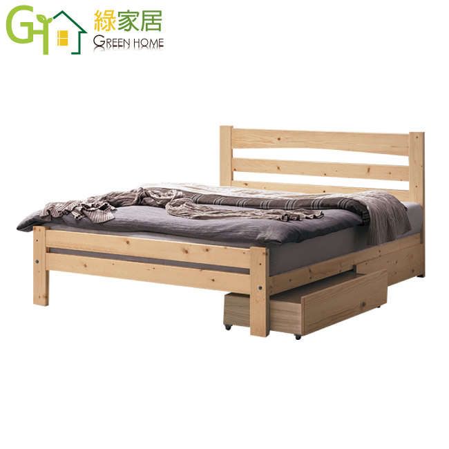 【綠家居】莫莉 現代5尺實木雙人床台(含二個抽屜抽格+不含床墊)