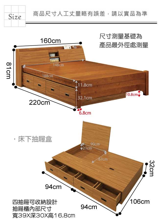 材質 | ◆產品名稱:【綠家居】 維多利 現代5尺雙人實木收納床台組合(床台+床底收納櫃) 產品尺寸: 組合尺寸:(寬)160x(深)220x(高)81/公分 收納抽屜櫃尺寸:(寬)106x(深)188x(高)32/公分 ◆材質: 材質:雲杉木&松木實木+實木木床板+五金滑軌結構 塗漆:優利坦全包式耐磨噴漆處理 |