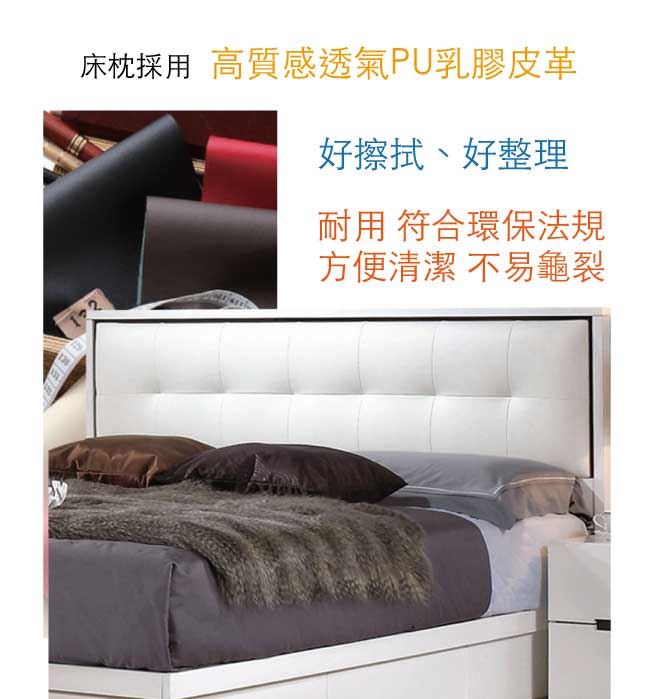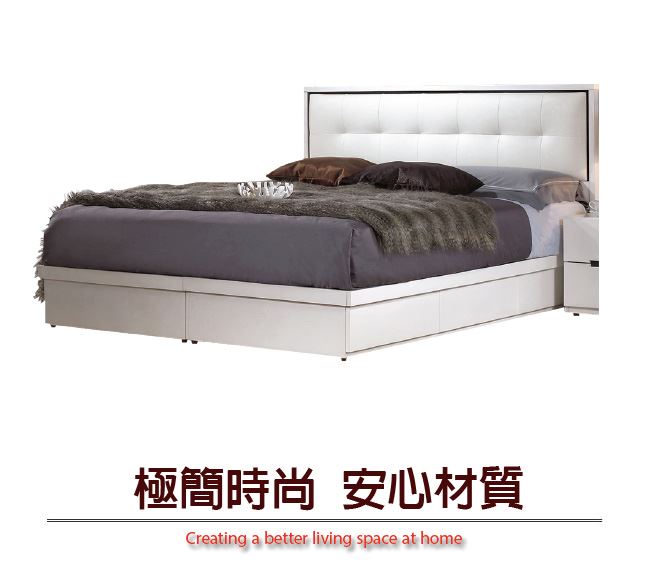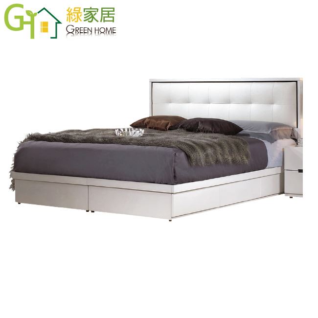 【綠家居】律法瑪 現代白6尺雙人加大皮革三抽床台組合(床頭片+三抽床底+不含床墊)