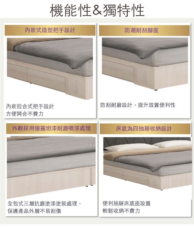 - 六分木床板+內崁式把手