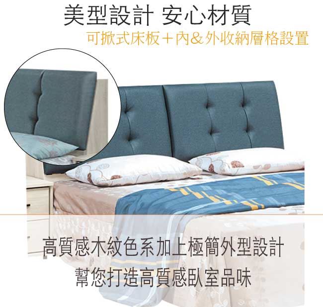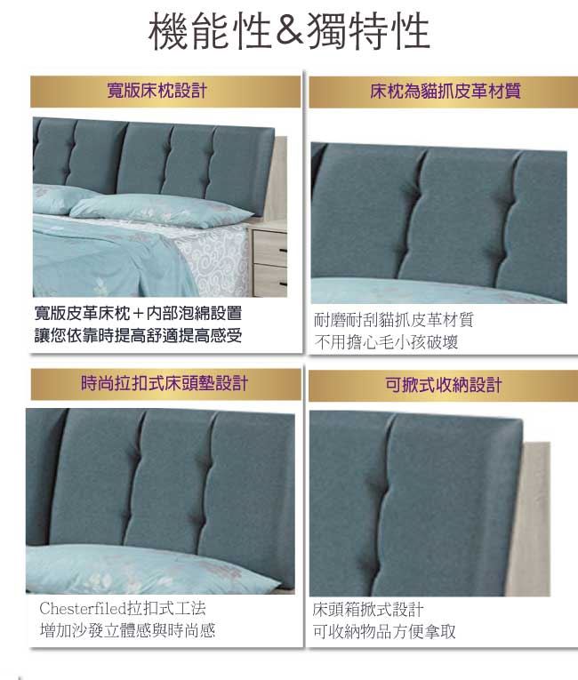 商 品 介 紹 | 【綠家居】雅美6尺雙人加大貓抓皮革床頭箱(不含床底+不含床墊) 淺橡木紋色系+現代簡約風格+安心材質製造,整體採用防蛀木心板+防刮貓抓皮革+高密度泡棉等安心材質製造,產品外層採用防潮耐磨噴漆處理搭配採用可掀式床枕板+內&外開放層格等收納空間設計,全由專人配送到家,專業安心服務,替你省下更多時間! 【商品特色】 淺橡木紋色系+現代簡約風格+安心材質製造,使用放心+搭配居家更便利 採用防蛀木心板+防刮貓抓皮革+高密度泡棉等安心材質製造 產品外層採用防潮耐磨噴漆處理 搭配採用可掀式床枕板+內&外開放層格等收納空間設計 此商品不需要DIY組立,此商品為組立後之成品 品質保證、專業設計、貼心服務 全由專人配送到家,專業安心服務,替您省下更多時間