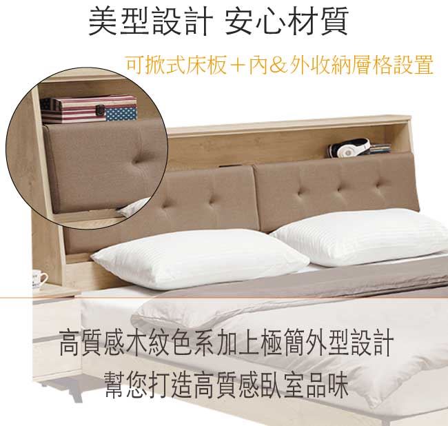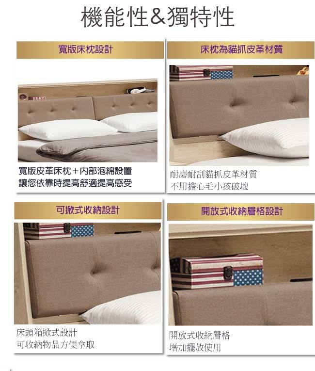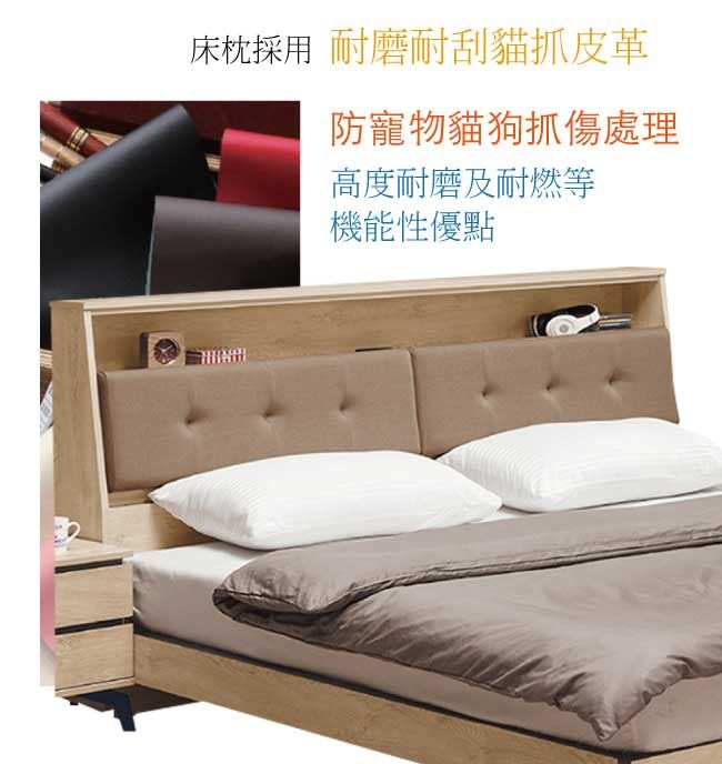 商 品 介 紹 | 【綠家居】魯可6尺雙人加大貓抓皮革床頭箱(不含床底+不含床墊) 橡木紋色系+現代簡約風格+安心材質製造,整體採用防蛀木心板+防刮貓抓皮革+高密度泡棉等安心材質製造,產品外層採用防潮耐磨噴漆處理搭配採用可掀式床枕板+內&外開放層格等收納空間設計,全由專人配送到家,專業安心服務,替你省下更多時間! 【商品特色】 橡木紋色系+現代簡約風格+安心材質製造,使用放心+搭配居家更便利 採用防蛀木心板+防刮貓抓皮革+高密度泡棉等安心材質製造 產品外層採用防潮耐磨噴漆處理 搭配採用可掀式床枕板+內&外開放層格等收納空間設計 此商品不需要DIY組立,此商品為組立後之成品 品質保證、專業設計、貼心服務 全由專人配送到家,專業安心服務,替您省下更多時間