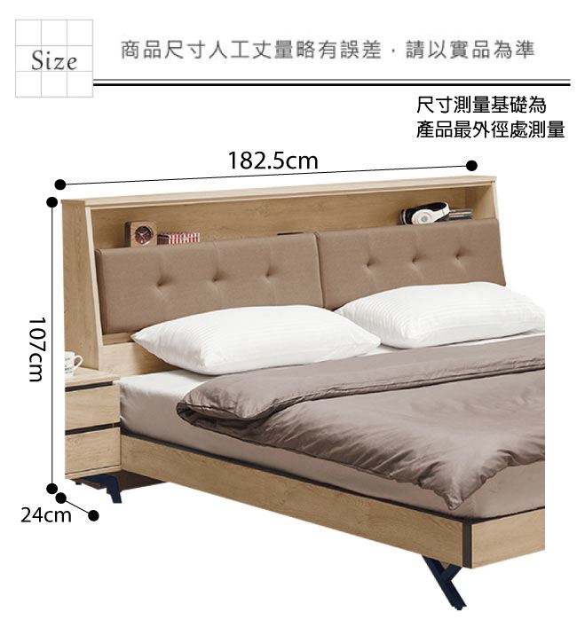 床頭箱尺寸:(寬)182.5x(深)24(高)107/公分 ◆材質: 材質:防蛀木心板+防刮貓抓皮革+高密度泡棉 噴漆:防潮耐磨噴漆處理