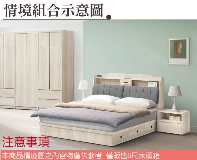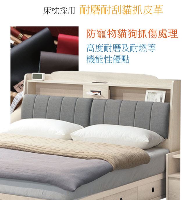 商 品 介 紹 | 【綠家居】凱文6尺雙人加大貓抓皮革床頭箱(不含床底+不含床墊) 淺橡木紋色系+現代簡約風格+安心材質製造,整體採用防蛀木心板+防刮貓抓皮革+高密度泡棉等安心材質製造,產品外層採用防潮耐磨噴漆處理搭配採用可掀式床枕板+內&外開放層格+單抽格+便利插座設置等收納空間設計,全由專人配送到家,專業安心服務,替你省下更多時間! 【商品特色】 淺橡木紋色系+現代簡約風格+安心材質製造,使用放心+搭配居家更便利 採用防蛀木心板+防刮貓抓皮革+高密度泡棉等安心材質製造 產品外層採用防潮耐磨噴漆處理 搭配採用可掀式床枕板+內&外開放層格+單抽格+便利插座設置等收納空間設計 此商品不需要DIY組立,此商品為組立後之成品 品質保證、專業設計、貼心服務 全由專人配送到家,專業安心服務,替您省下更多時間