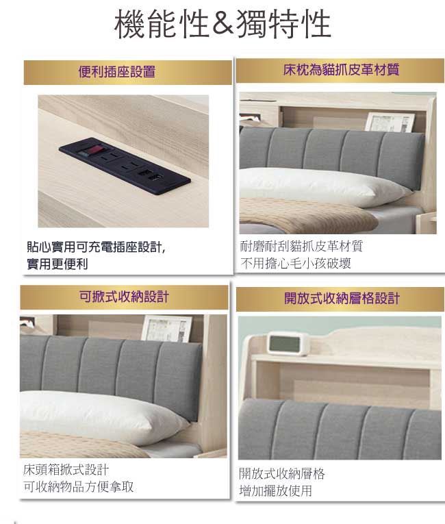 - 可掀式床枕板+內&外開放層格