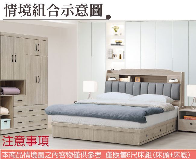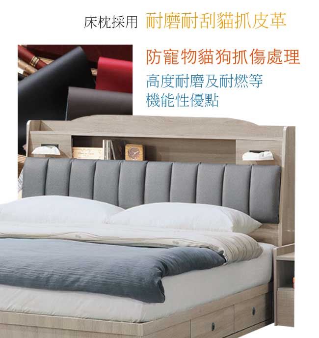 【綠家居】毛利6尺雙人加大貓抓皮革三抽床台組合(床頭箱+三抽床底+不含床墊)