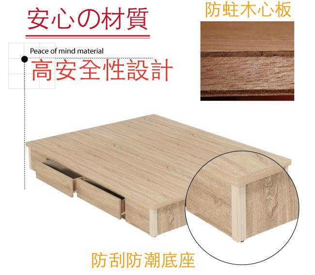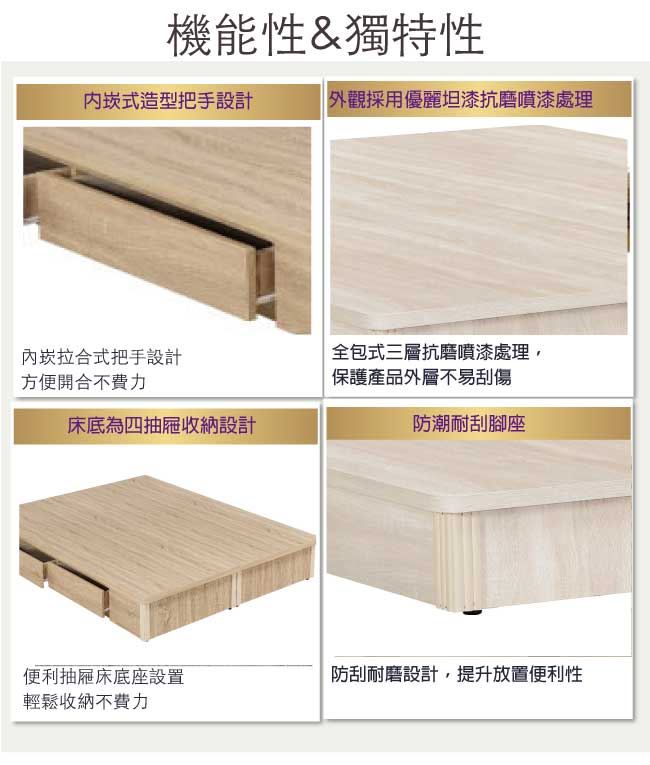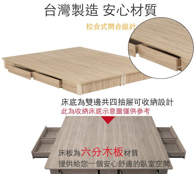 - ◆產品名稱:【綠家居】查爾地 雙邊開合6尺雙人加大四抽床底(二色可選)