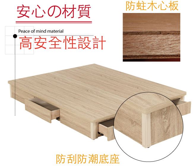- ◆產品名稱:【綠家居】查爾地 三邊開合6尺雙人加大四抽床底(三色可選)