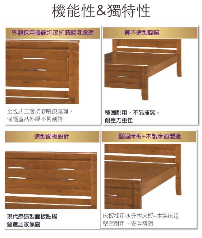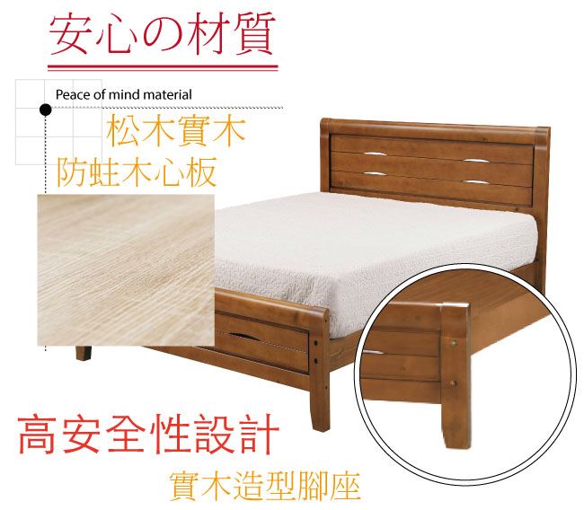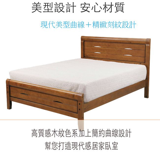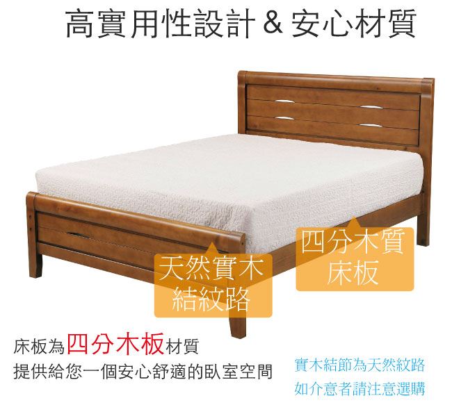 商品 介紹 | 【綠家居】可朵 檜木紋6尺雙人加大實木床台(不含床墊) 檜木紋色+現代簡約風格+安心材質製造,整體採用松木實木+四分木床板+防潮實木底座等安心材質製造,外層採用優利坦全包式耐磨噴漆處理搭配床板高度可做高40cm&低28cm二段式調整設計,全由專人配送到家,專業安心服務,替你省下更多時間! 【商品特色】 檜木紋色+現代簡約風格+安心材質製造,使用放心+搭配居家更便利 採用松木實木+四分木床板+防潮實木底座等安心材質製造 搭配床板高度可做高40cm&低28cm二段式調整設計 此商品不需要DIY組立,此商品為組立後之成品 品質保證、專業設計、貼心服務 全由專人配送到家,專業安心服務,替您省下更多時間 |