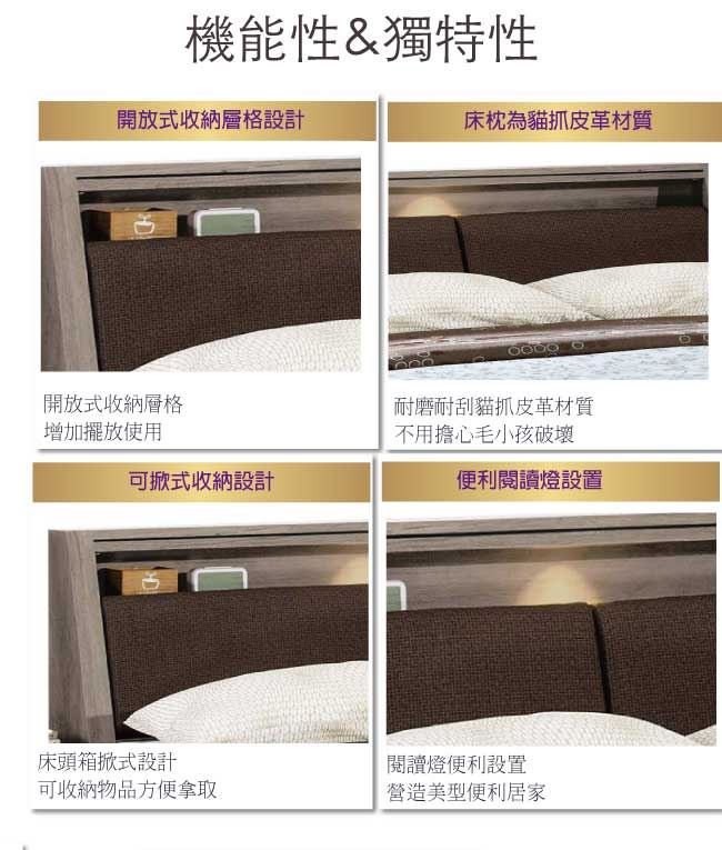 - 可掀式床枕板+內&外開放層格