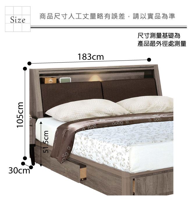 床頭箱尺寸:(寬)183x(深)30(高)105/公分 ◆材質: 材質:防蛀木心板+防刮貓抓皮革+高密度泡棉 噴漆:防潮耐磨噴漆處理