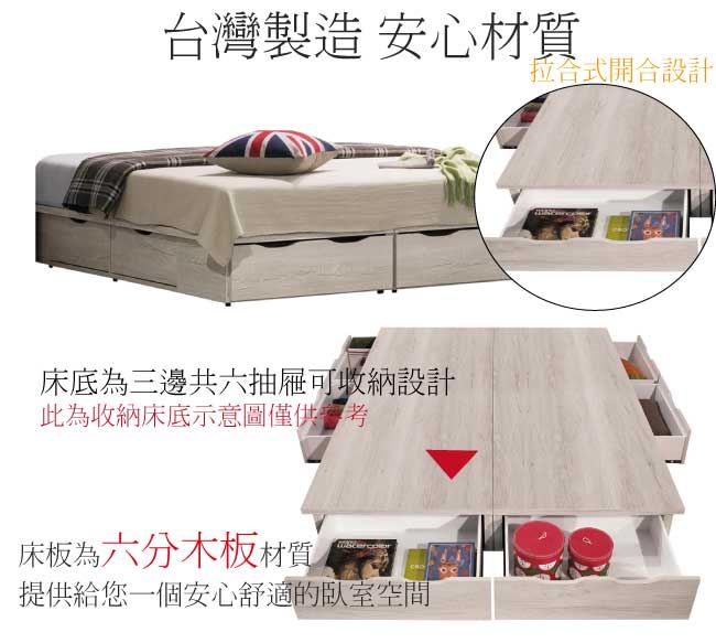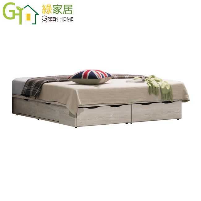 【綠家居】瓦雷納淺橡6尺雙人加大三邊開合六抽床底(不含床墊)