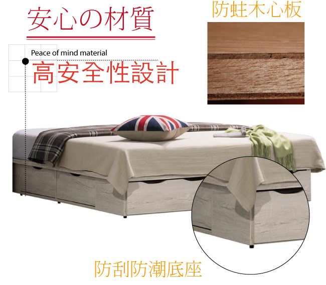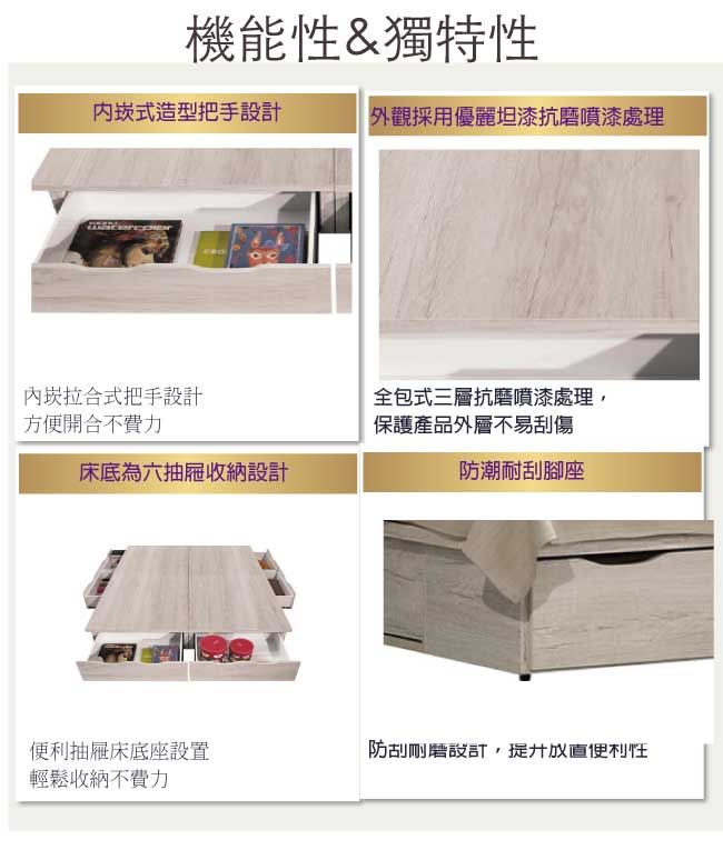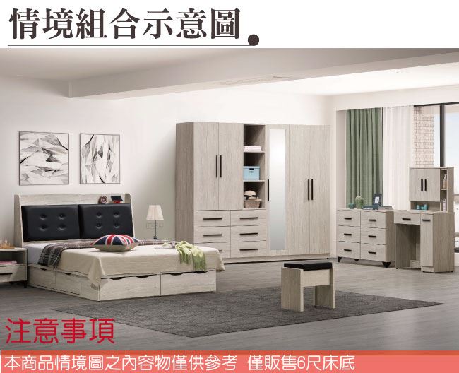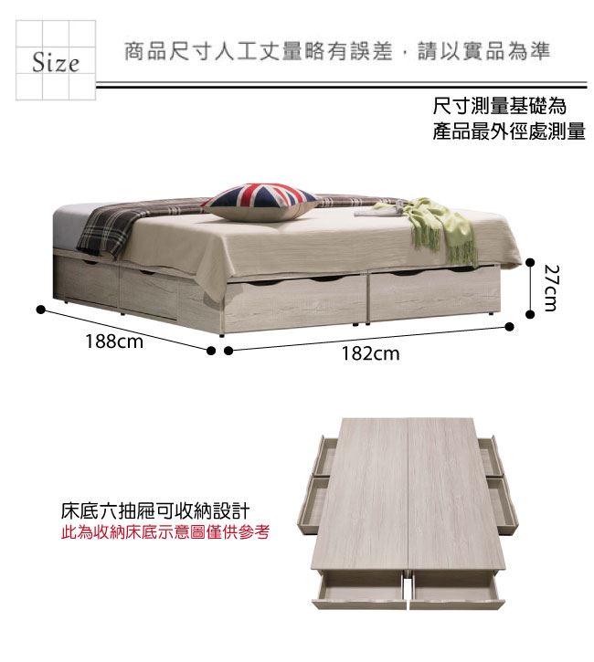 - ◆產品名稱:【綠家居】瓦雷納淺橡6尺雙人加大三邊開合六抽床底(不含床墊)