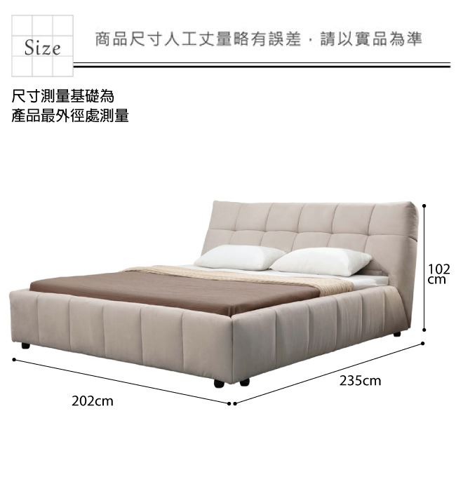 商品 介紹 | 【綠家居】波多諾6尺雙人加大科技磨砂布床台組合(不含床墊) 現代風格亞麻色系+現代簡約風格+安心材質製造,整體採用內置實木骨架+仿皮革科技磨砂布料+高密度泡棉+防潮腳座+靜音式排骨架床底等安心材質製造,搭配床底採用內崁式平面床底,床墊放置可受到良好保護同時避免移動,並平穩安置避免床墊結構受損,全由專人配送到家,專業安心服務,替你省下更多時間! 現代風格亞麻色系+現代簡約風格+安心材質製造,使用放心+搭配居家更便利 採用內置實木骨架+仿皮革科技磨砂布料+高密度泡棉+防潮腳座+靜音式排骨架床底(內崁式床墊置放)等安心材質製造 搭配床底採用內崁式平面床底,床墊放置可受到良好保護同時避免移動,並平穩安置避免床墊結構受損 此商品不需要DIY組立,此商品為組立後之成品 品質保證、專業設計、貼心服務 全由專人配送到家,專業安心服務,替您省下更多時間 |