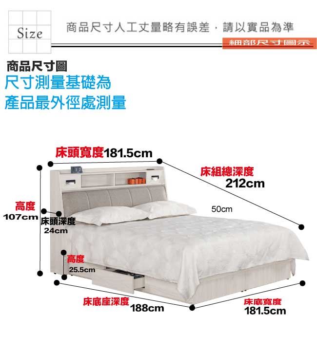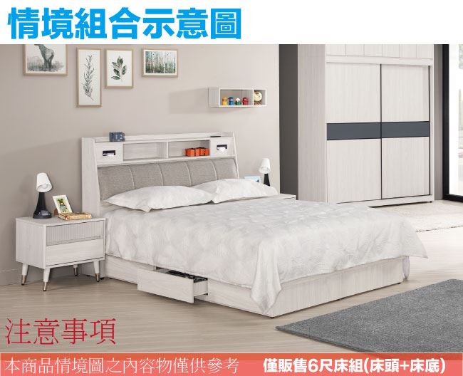 商品 介紹 | 【綠家居】摩克6尺貓抓皮革雙人加大三抽床台組合(床頭箱+三抽床底+不含床墊) 淺橡木紋色系+現代簡約風格+安心材質製造,整體採用防蛀木心板+六分木床板+防潮耐磨腳座+耐磨貓抓皮革+高密度泡棉等安心材質製造,產品外層採用防潮耐磨噴漆處理搭配採用床頭箱可掀式床枕板+內外開放層格+便利插座設置+床底單邊開合三抽屜等收納空間設計,全由專人配送到家,專業安心服務,替你省下更多時間! 【商品特色】 淺橡木紋色系+現代簡約風格+安心材質製造,使用放心+搭配居家更便利 採用防蛀木心板+六分木床板+防潮耐磨腳座+耐磨貓抓皮革+高密度泡棉等安心材質製造 產品外層採用防潮耐磨噴漆處理 搭配採用床頭箱可掀式床枕板+內外開放層格+便利插座設置+床底單邊開合三抽屜等收納空間設計 此商品不需要DIY組立,此商品為組立後之成品 品質保證、專業設計、貼心服務 全由專人配送到家,專業安心服務,替您省下更多時間 |