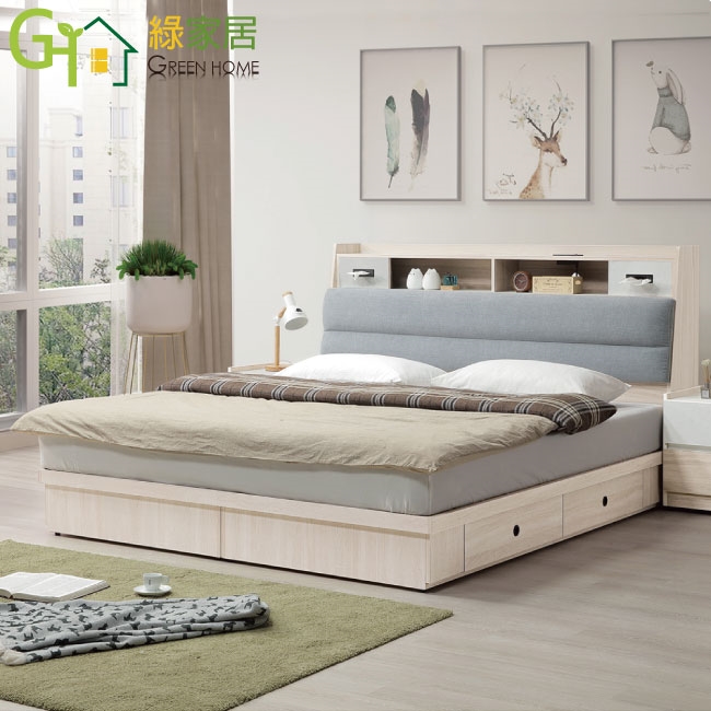 ★偏遠地區需額外加收運費,下標請先問與答詢問★ ★下訂前注意 由於商品流動較快,下訂前請先詢問是否有貨在下訂喔~★ 【綠家居】艾蘿6尺雙人加大貓抓皮四抽床台組合(床頭箱+四抽床底+不含床墊) 淺橡木紋色系+安心材質製造,使用放心+搭配居家更便利,採用防蛀木心板+六分木床板+防潮耐磨底座+耐刮貓抓皮革+高回彈泡棉等安心材質製造 ,外層採用防潮耐磨噴漆處理搭配床頭箱採用可掀式床枕板+內&外開放式層格+便利插座設置加上床底採用雙邊開合四抽屜等收納空間設計,全由專人配送到家,專業安心服務,替你省下更多時間!