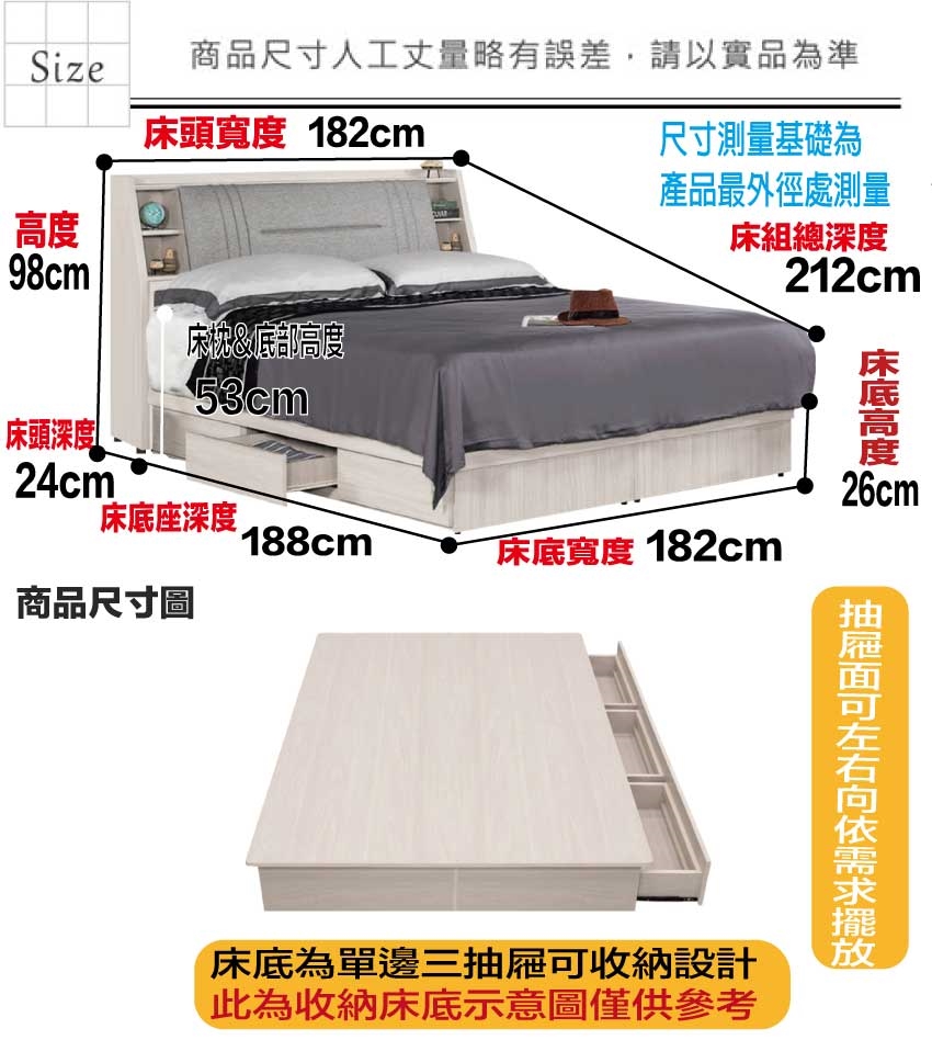 床頭尺寸:(寬)182x(深)24x(高)98/公分