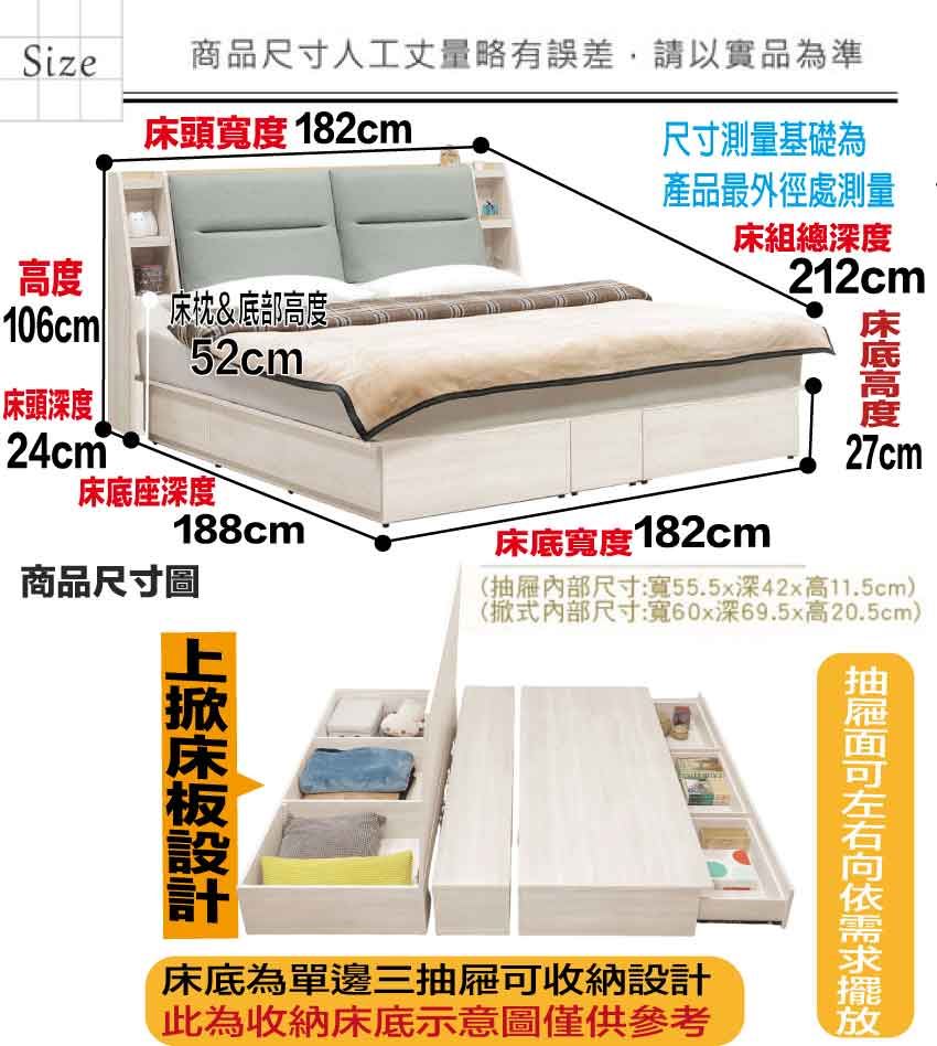 床頭尺寸:(寬)182x(深)24x(高)106/公分