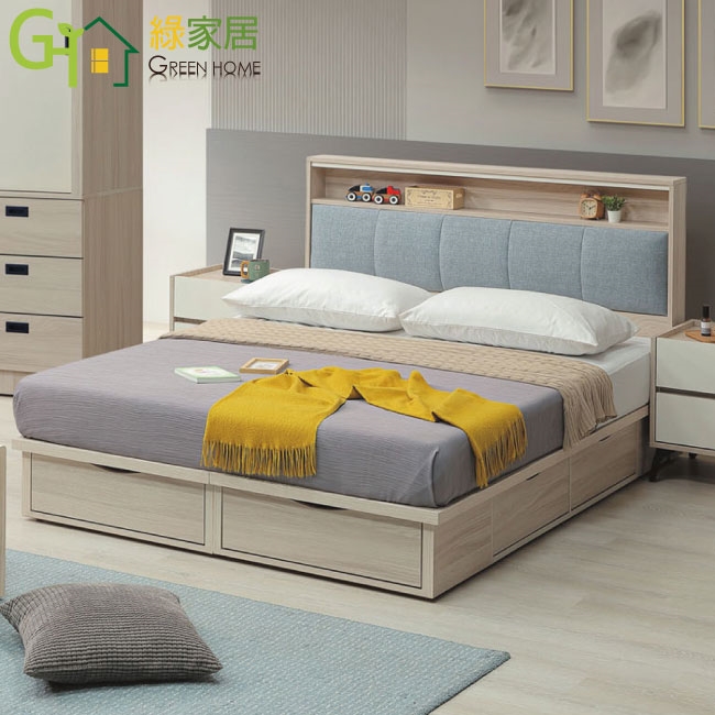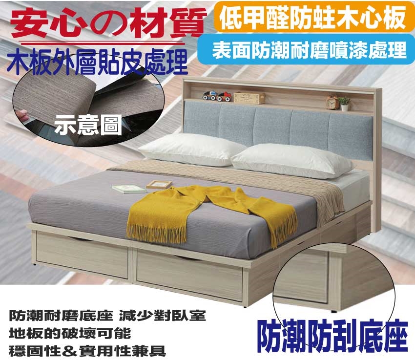 ★偏遠地區需額外加收運費,下標請先問與答詢問★ ★下訂前注意 由於商品流動較快,下訂前請先詢問是否有貨在下訂喔~★ 【綠家居】美斯六抽6尺雙人加大貓抓布床台組合(床頭片+六抽床底+不含床墊) 橡木紋色系+安心材質製造,使用放心+搭配居家更便利,採用防蛀木心板+防潮耐磨底座+耐刮貓抓布+高回彈泡棉等安心材質製造 ,外層採用防潮耐磨噴漆處理搭配床頭開放收納層格+床底座三邊開合六抽屜等收納空間設計,全由專人配送到家,專業安心服務,替你省下更多時間!