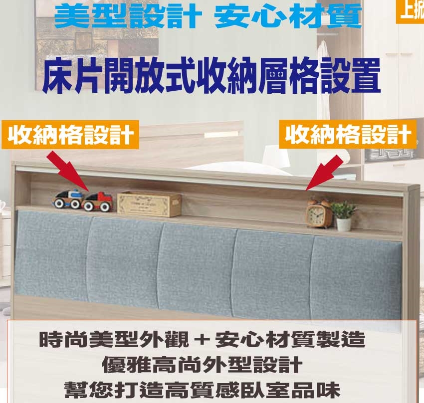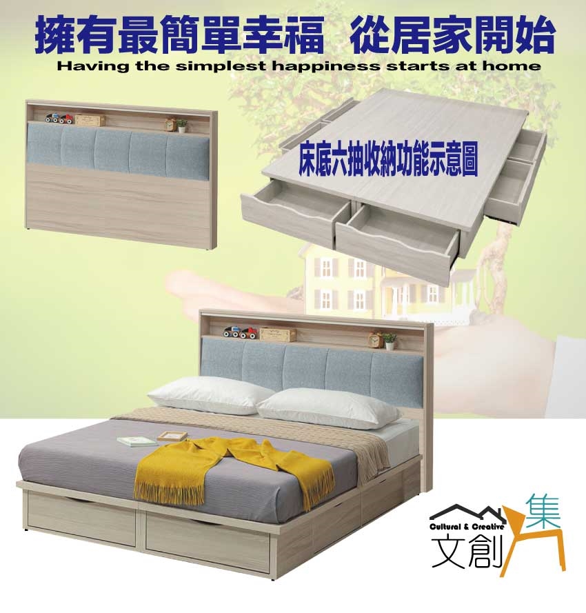 搭配開放收納層格+床底座三邊開合六抽屜等收納空間設計