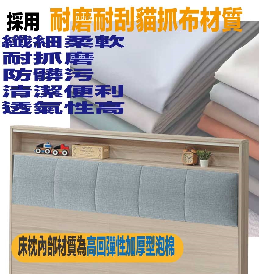 材質:防蛀木心板+六分木床板+防潮耐磨底座+耐刮貓抓布+高回彈泡棉