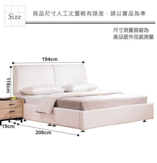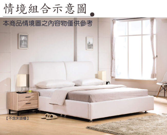 【綠家居】梅莎 時尚6尺皮革雙人加大床台組合(二色可選+不含床墊) 充滿現代風格的造型線條,二色系可選+現代風格設計提升居家品味,更顯個人時尚氣質。採用實木骨架材質+PU環保皮革+高密度泡棉等搭配設計讓您不再煩惱耐用性,雙人床頭片加上收納式底座床底組合符合現在空間所需,床底為防鏽鍍烙造型腳座,床頭片+床底的實用臥室組合設計,即使身在都市的喧囂鬧區,只要回到了家,就彷彿進入心中的一方小空間 【綠家居】梅莎 時尚6尺皮革雙人加大床台組合(二色可選+不含床墊) 可千萬別錯過喔!現在購買專人送到府服務,免組裝+免運費,讓你省時省力省運費!