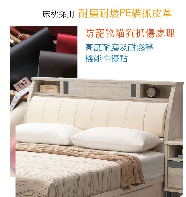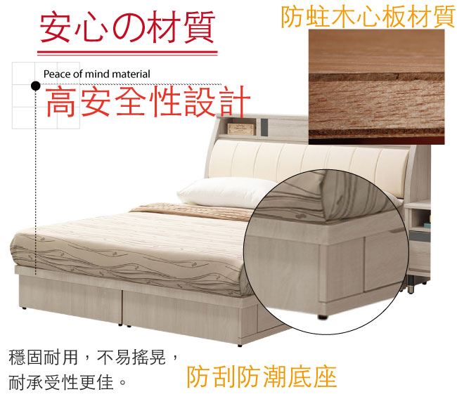 白橡木紋色系+雙邊開四抽屜床底