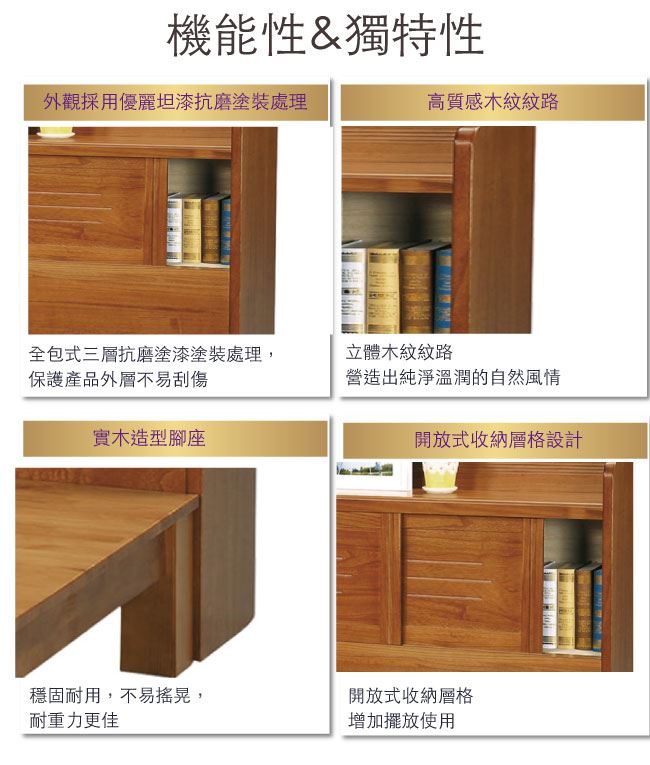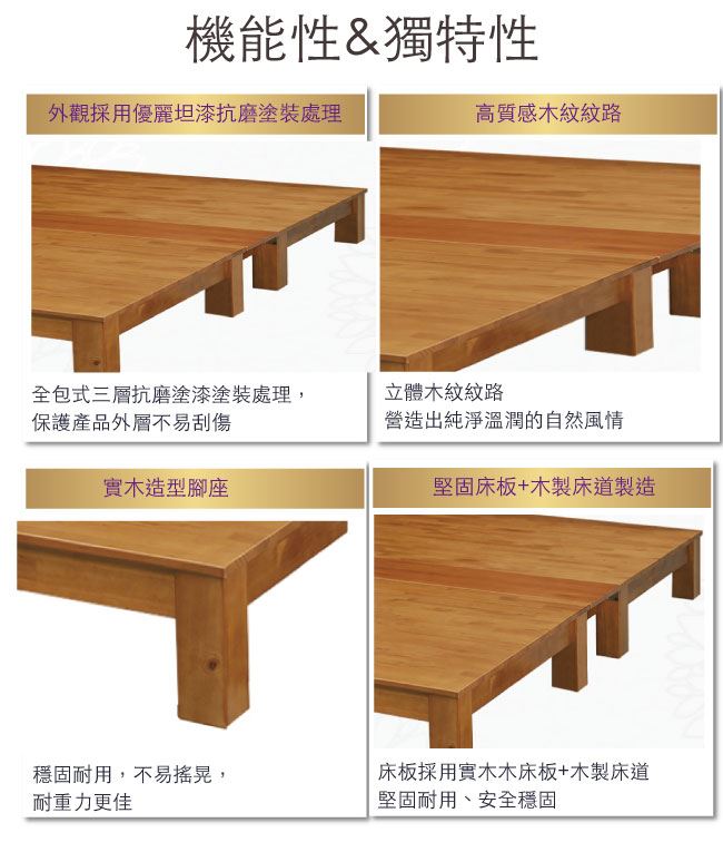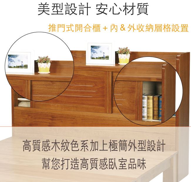 商品介紹 | 【綠家居】蒙杜 現代6尺雙人加大實木收納床台組合(床頭箱+床底+收納抽屜+不含床墊) 樟木紋色系+現代簡約風格+安心材質製造,整體採用松木實木+實木木床板+防蛀木心板+五金滑軌結構等安心材質製造,外層採用優利坦全包式耐磨噴漆處理搭配採用推門式開合櫃+開放&隱藏式收納層格+單抽屜收納櫃等便利設計,全由專人配送到家,專業安心服務,替你省下更多時間! 【商品特色】 樟木紋色系+現代簡約風格+安心材質製造,使用放心+搭配居家更便利 採用松木實木+實木木床板+防蛀木心板+五金滑軌結構等安心材質製造 採用推門式開合櫃+開放&隱藏式收納層格+單抽屜收納櫃等便利設計 此商品不需要DIY組立,此商品為組立後之成品 品質保證、專業設計、貼心服務 全由專人配送到家,專業安心服務,替您省下更多時間 |