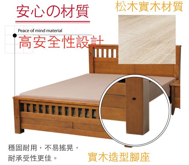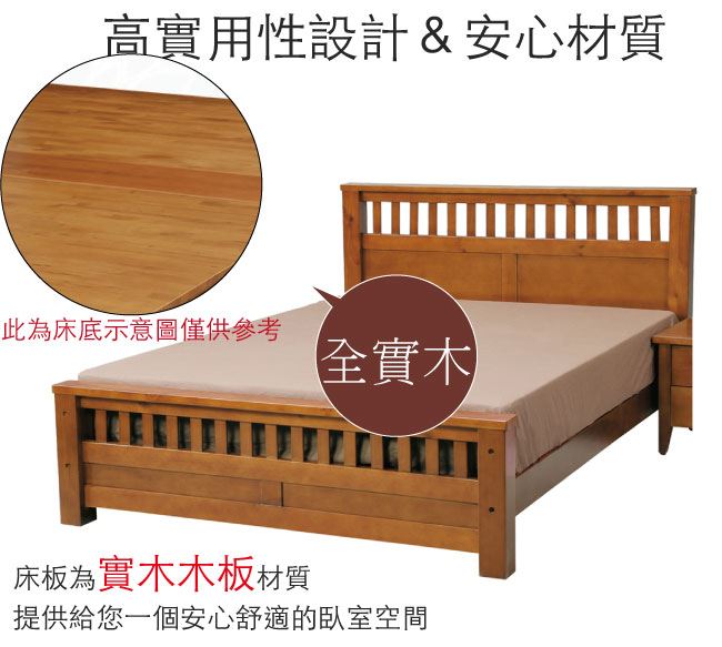 材質 | ◆產品名稱:【綠家居】 坎帕 現代6尺雙人加大實木床台 產品尺寸: 組合尺寸:(寬)186x(深)206x(高)97/公分 床架床道可作高低調整使用 ◆材質: 材質:松木實木+實木木床板 塗漆:優利坦全包式耐磨噴漆處理 |