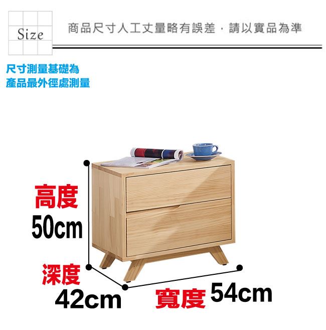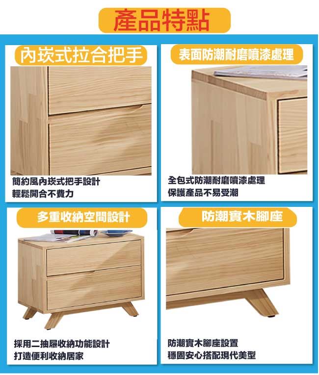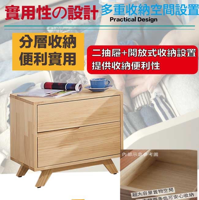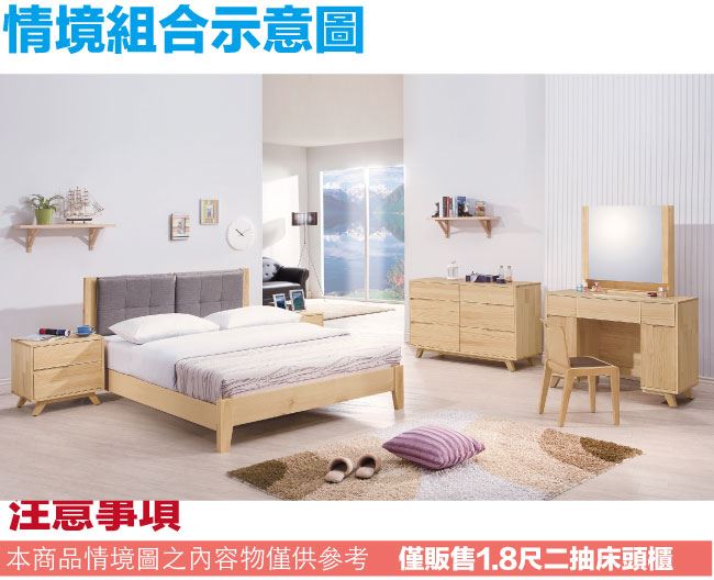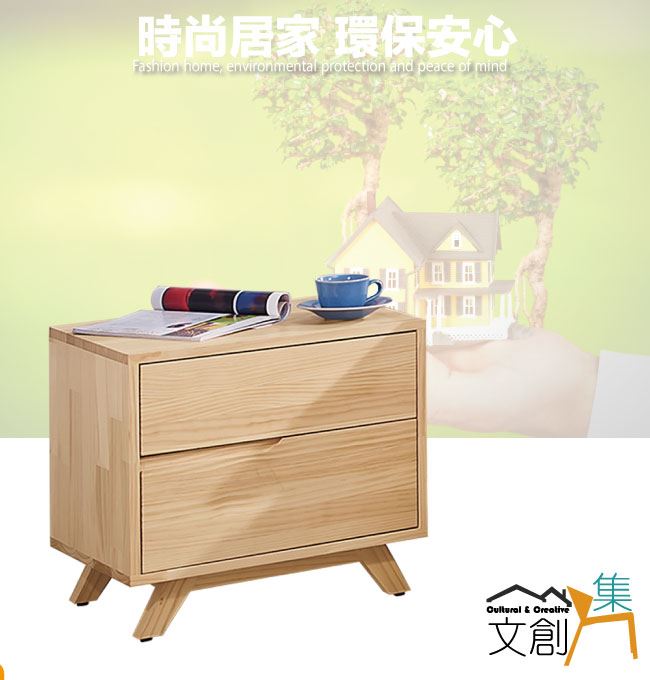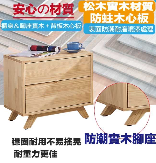 【綠家居】方斯實木1.8尺二抽床頭櫃