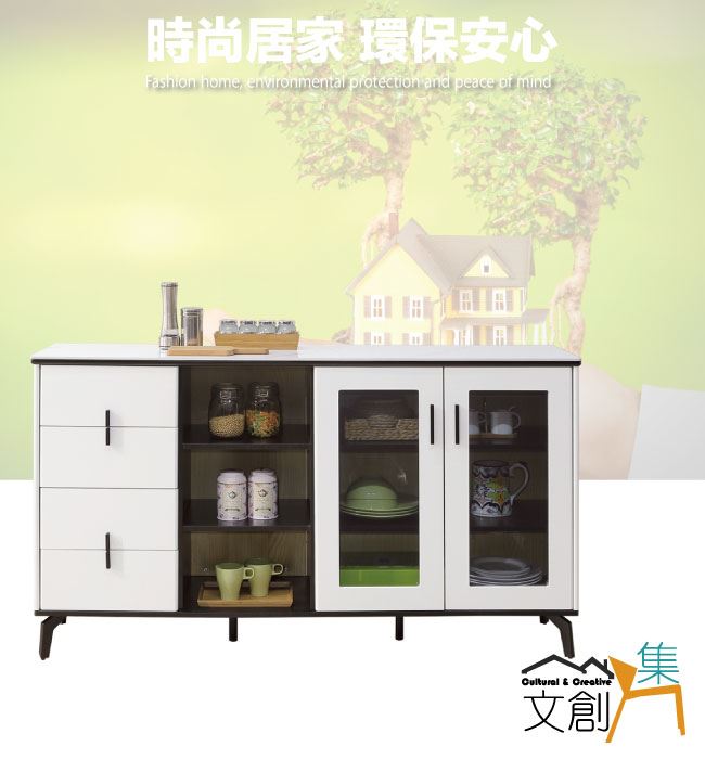 【綠家居】布倫蘭雙色5.3尺岩板餐櫃/收納櫃