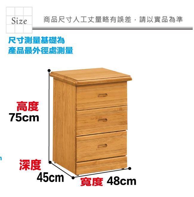 ◆產品名稱:【綠家居】夏斯1.6尺實木三抽床頭櫃