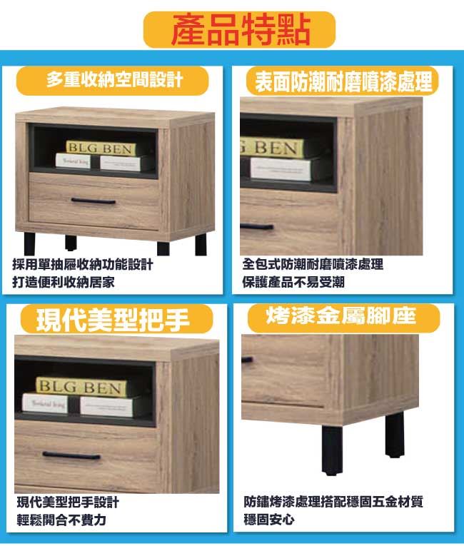 【綠家居】克蘿1.6尺單抽床頭櫃