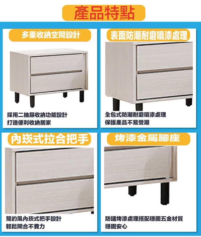 【綠家居】萊迪1.7尺二抽床頭櫃
