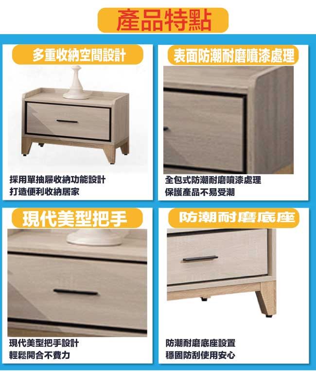 ◆產品名稱:【綠家居】悅卡1.8尺單抽床頭櫃(二色可選)