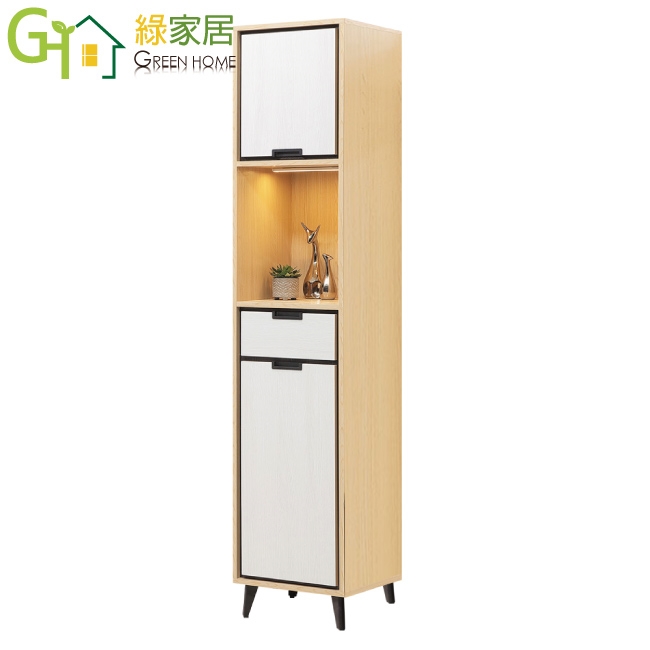 【綠家居】亞卡利雙色1.3尺二門單抽玄關櫃(含LED感應燈)
