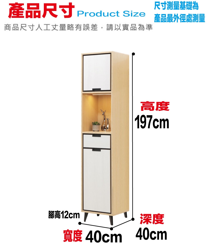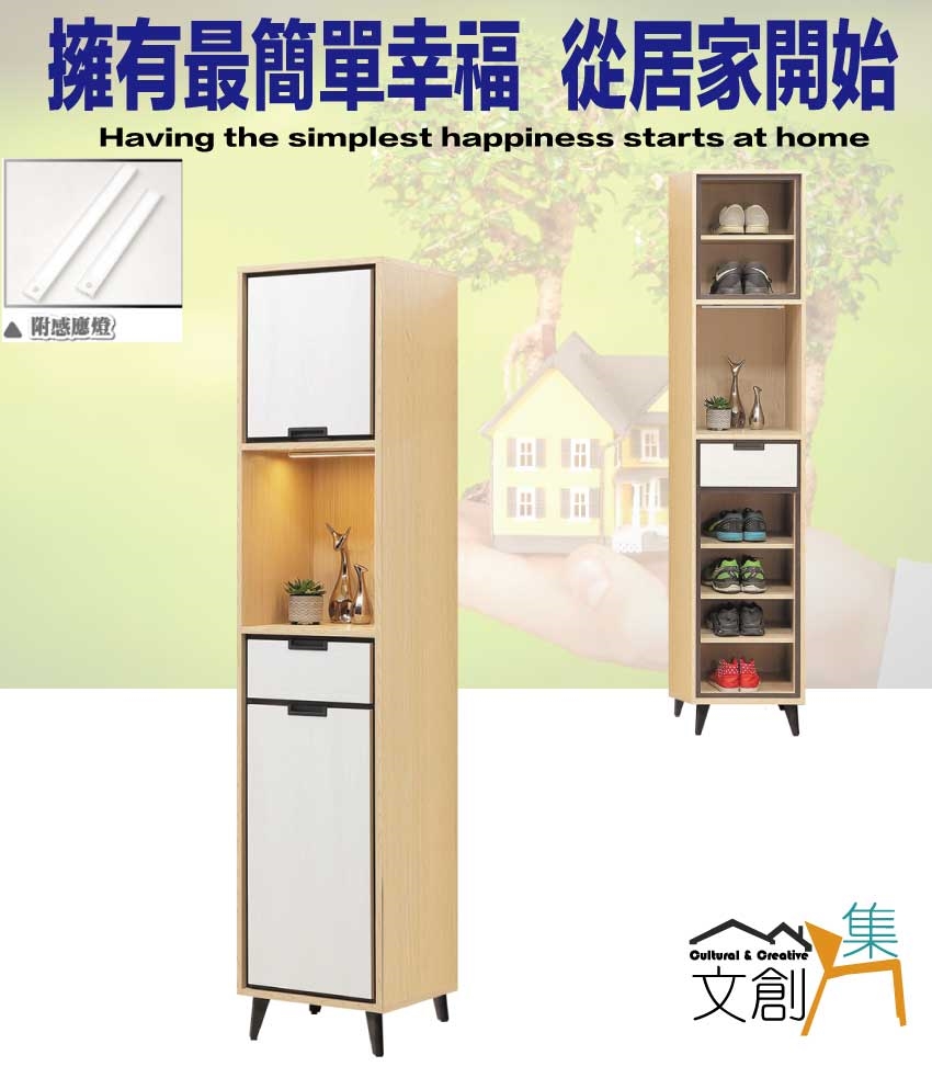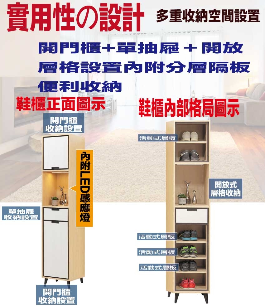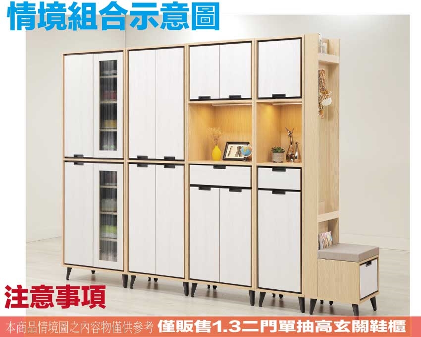 - ◆產品名稱:【綠家居】亞卡利雙色1.3尺二門單抽玄關櫃(含LED感應燈)